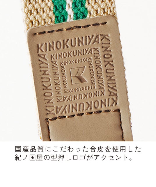 国産品質にこだわった合皮が使用された紀ノ国屋の型押しロゴが、アクセントになっています。