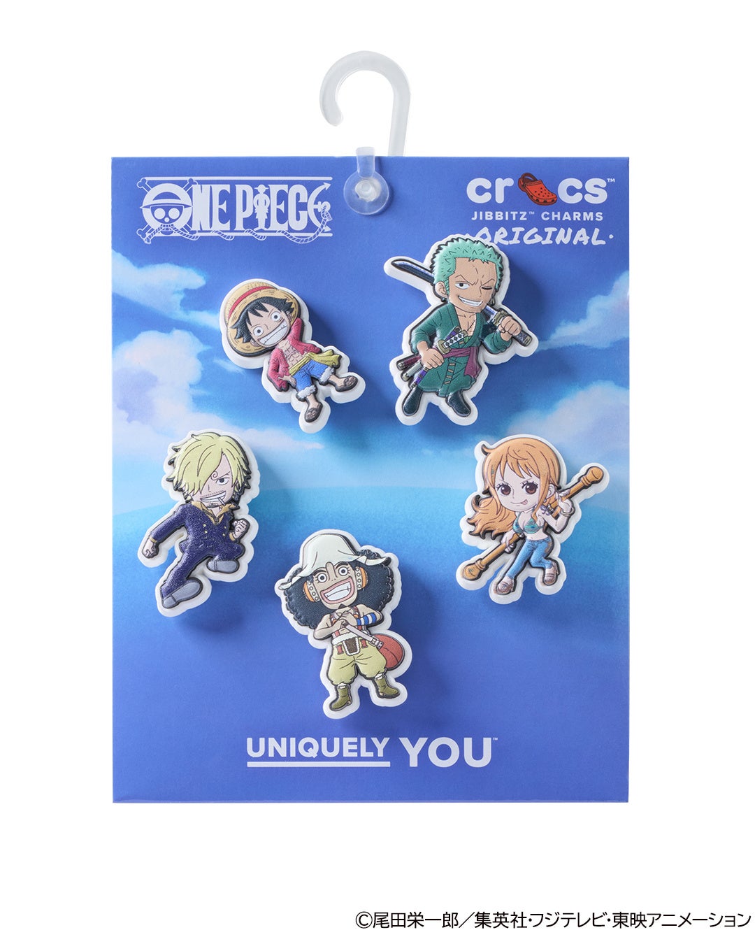 さらに、全5種類のジビッツ(TM) チャームセットでは、ルフィの麦わら帽子や電伝虫をセットにしたアイテムと、麦わらの一味をモチーフにしたセットの2つを展開します。また、個性豊かなキャラクターたちのジビッツ(TM) チャームは単品でも発売。どちらも限定のアイテムのため、お気に入りのキャラクターをゲットしてコラボクロッグを更にアレンジしてみてはいかがでしょうか。