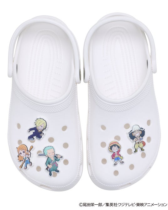 『ONE PIECE』は、海賊王をめざすモンキー・D・ルフィを船長とする海賊“麦わらの一味”が“ひとつなぎの大秘宝(ワンピース)”を求めて航海を続ける物語です。友情や絆、胸が熱くなるストーリーが多くのファンに支持され、世代を超えて愛され続けています。今回のコラボレーションでは、そんな『ONE PIECE』の主人公、モンキー・D・ルフィや仲間のトニートニー・チョッパーをあしらったクラシック クロッグをはじめ、麦わらの一味の船「サウザンド・サニー号」をモチーフにした物語ならではのデザインもラインアップ。さらに、ロロノア・ゾロ、ナミなどのキャラクターが揃ったジビッツ(TM) チャームで、お気に入りのシューズやアクセサリーを自分らしくカスタマイズできます。この春、キャラクターたちを足元に連れて一緒に冒険に出かけましょう。