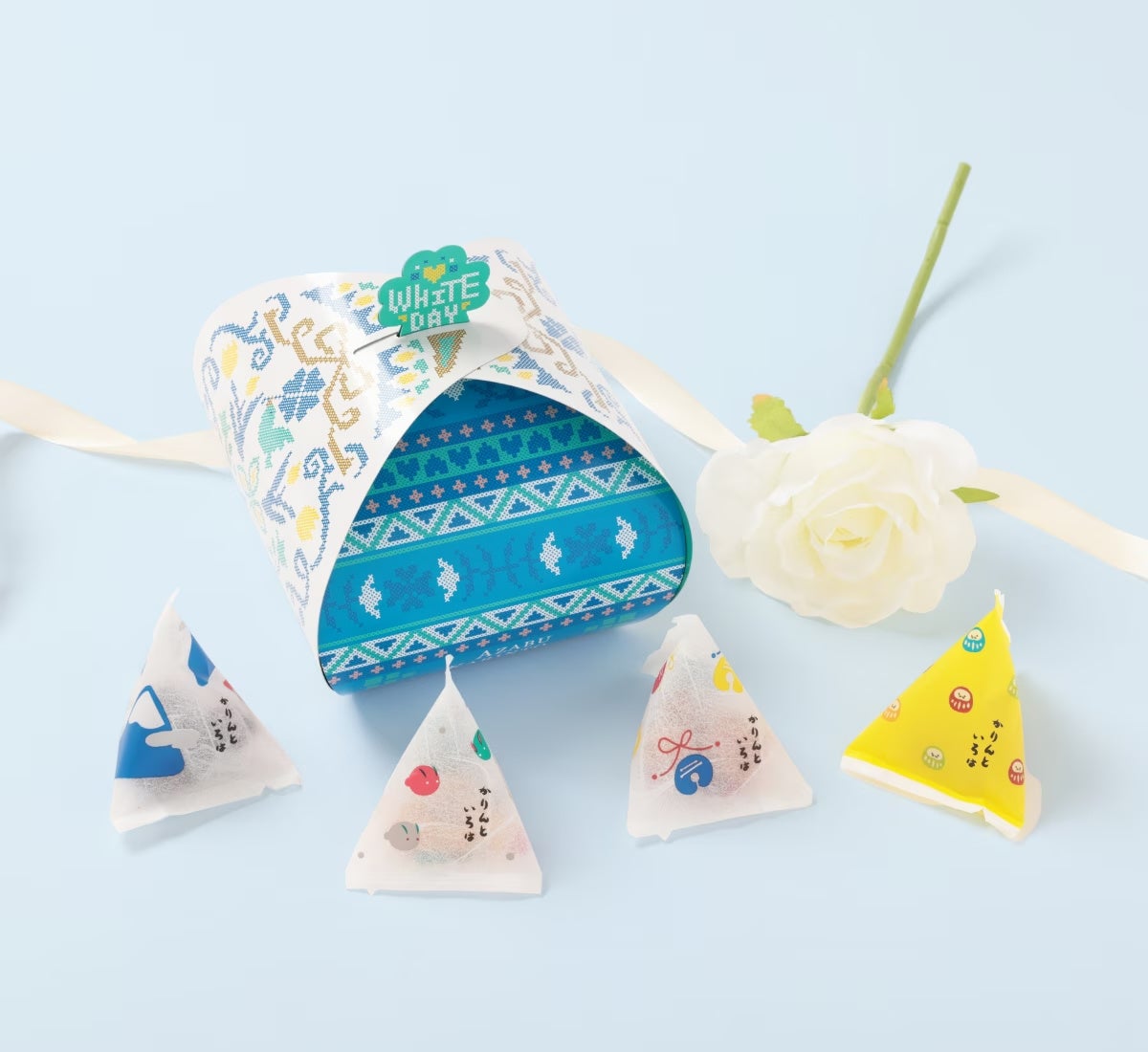 ホワイトデー限定 かりんと いろは 8袋入りホワイトデー限定のパッケージに4種のショコラが入ったいろはです。