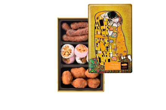 「接吻」(グスタフ・クリムト)内容:蜂蜜かりんと(黒)/梅ばちかりんと(苺・胡麻)/キャラメルバターかりんと