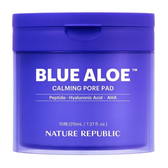 ネイチャーリパブリックでは、ハイクラスなアロエケアを目指し、韓国済州島産の生アロエ*、氷河水*¹、ペプチド*²を組み合わせた独自成分「ブルーアロエ(TM)」を開発。従来のアロエシリーズがさっぱりとうるおうスキンケアシリーズだったのに対し、このブルーアロエ(TM)はエイジングケア*³に着目して毛穴まわりをふっくらと整え、肌にハリとうるおいを与えます。シリーズをとおして春夏シーズンに合うよう軽いテクスチャーに調整しているので、みずみずしい使い心地と毛穴ケア*⁴を両立させた商品となっています。