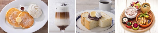 な種類のパンケーキと飲み物で憩いのひとときをお過ごしください。