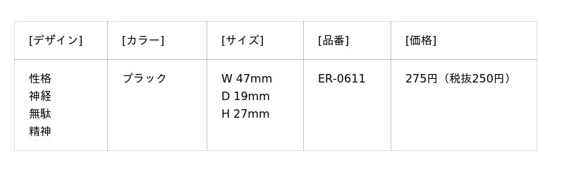 ラインアップは、デフォルメデザインした「性格」「神経」「無駄」「精神」の4種類。本体カラーはブラック。メーカー希望小売価格(税込)は1個275円です。