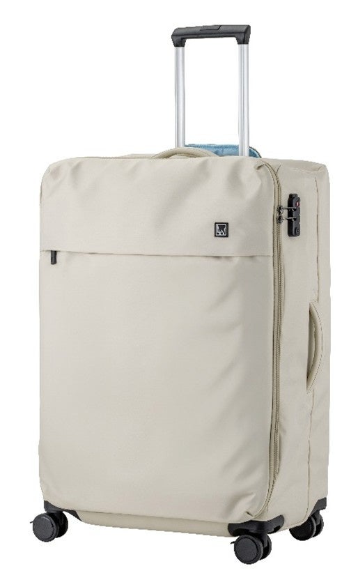 『FLIP』は、従来のソフトキャリーに比べて、見た目と機能性の両面から、よりしなやかな佇まいを追求したスーツケースです。斜め方向に織り込まれた織り柄が生み出す質感と立体感が特長で、中身や動きに合わせてケースの表情が自然と変わり、ピンと張ったスーツケースにはない、ふんわりとした印象をつくりだします。生地表面には耐久性撥水加工を施し、日常使用での水滴や軽い雨にも対応。柔らかな見た目でありながら、スーツケースに求められる耐久性と実用性を備えています。また、ストッパー付きキャスターやサイドハンドル、台座など、移動を支える機能を多数搭載。決まった形に縛られず、使う人の動きや荷物に寄り添う、自由度の高い一台です。サイズは機内持ち込みが可能なSサイズ(約37L)と、7泊以上の旅行にも使用できるLサイズ(約90L)の2種類。カラーはブラック、アイボリー、ブルー、レッド、モカの5色展開です。外装は落ち着いたトーンでまとめながら、内装にはそれぞれ異なるアクセントカラーを採用。開いた瞬間に印象が切り替わるコントラストが、移動時間にさりげない楽しさを添えます。価格はSサイズが16,280円、Lサイズが21,780円(いずれも税込)です。