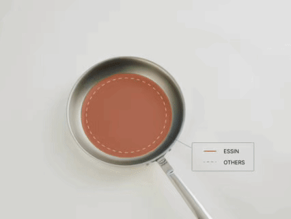 食材同士が重なりにくく、水分がこもらずにしっかり焼き付けられるため、外はカリッと中はジューシーに。広い底面で、味まで均一に。これが、ESSINの焼きの設計です。
