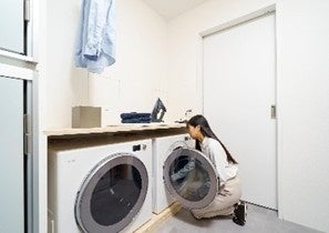 共用施設「ランドリールーム」にはガス衣類乾燥機「乾太くん」を設置※3。ガスの力でしっかり衣類を乾燥でき時短になるだけでなく、ふわふわに仕上がり、花粉中のアレル物質を軽減することができます※4。