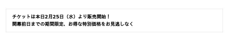 本日2月25日(水)11:00よりチケットの販売を開始いたします。