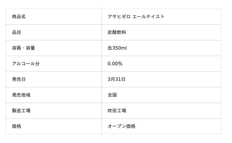 アサヒビール株式会社(本社 東京、社長 松山一雄)は、アルコール分0.00%のノンアルコールビールテイスト飲料「アサヒゼロ」ブランド初の限定商品『アサヒゼロ エールテイスト』を3月31日から数量限定で発売します。