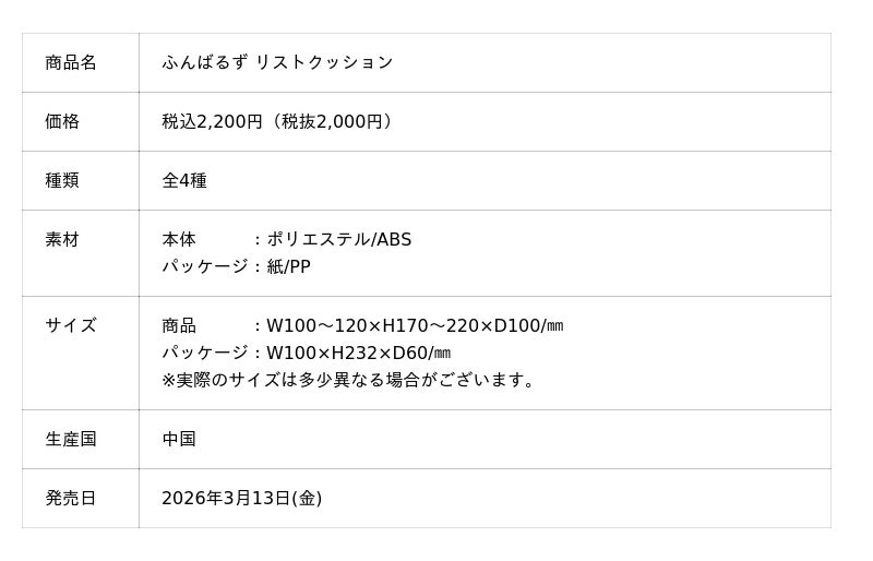 「ふんばるず リストクッション」ラインナップ(全4種)
