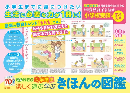 幼児から小学生になる時期に身につけたい「生きる力」が1冊につまった、小学校入学準備の決定版。 最新の教育トレンド「きもち」の章では「話す・聞く・考える力」を育みます。小学校受験に役立つポイントも満載!