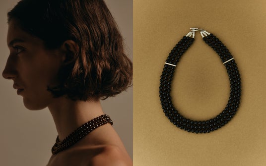 ヴィンテージジュエリーに着想を得て、均等に並べたオニキスが確かな存在感を発揮。