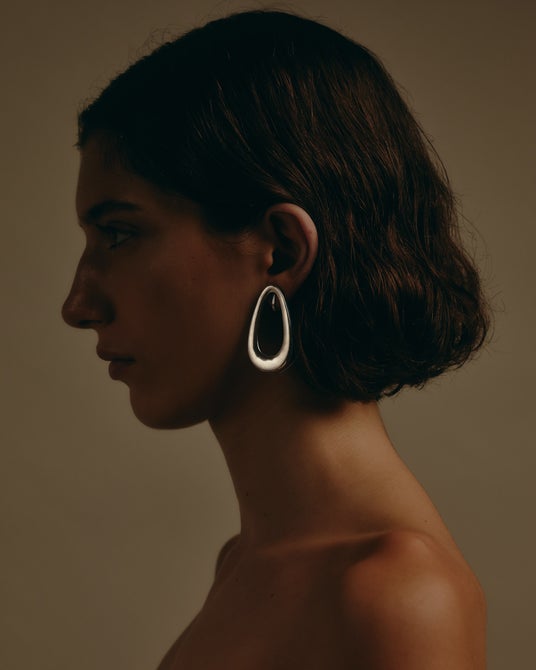 シルバーの静けさとモチーフの有機性が同居し、アーティな空気を纏わせるピアス。