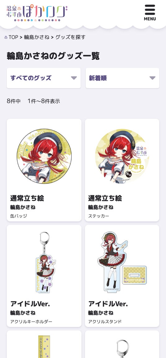 自宅でも旅先でもカタログ形式でグッズ、パネル、コラボ情報を閲覧可能