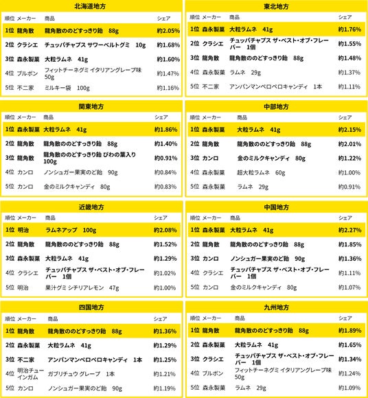 地方別のキャンディ売れ筋ランキング(2026年1月)