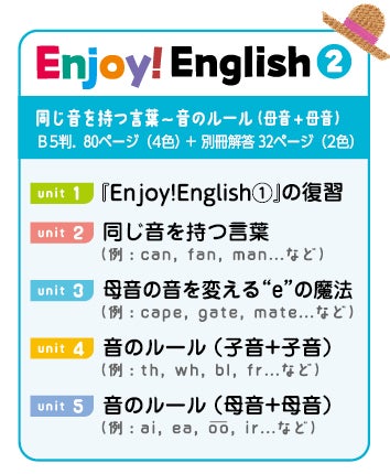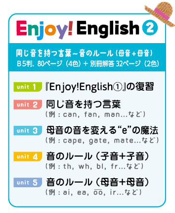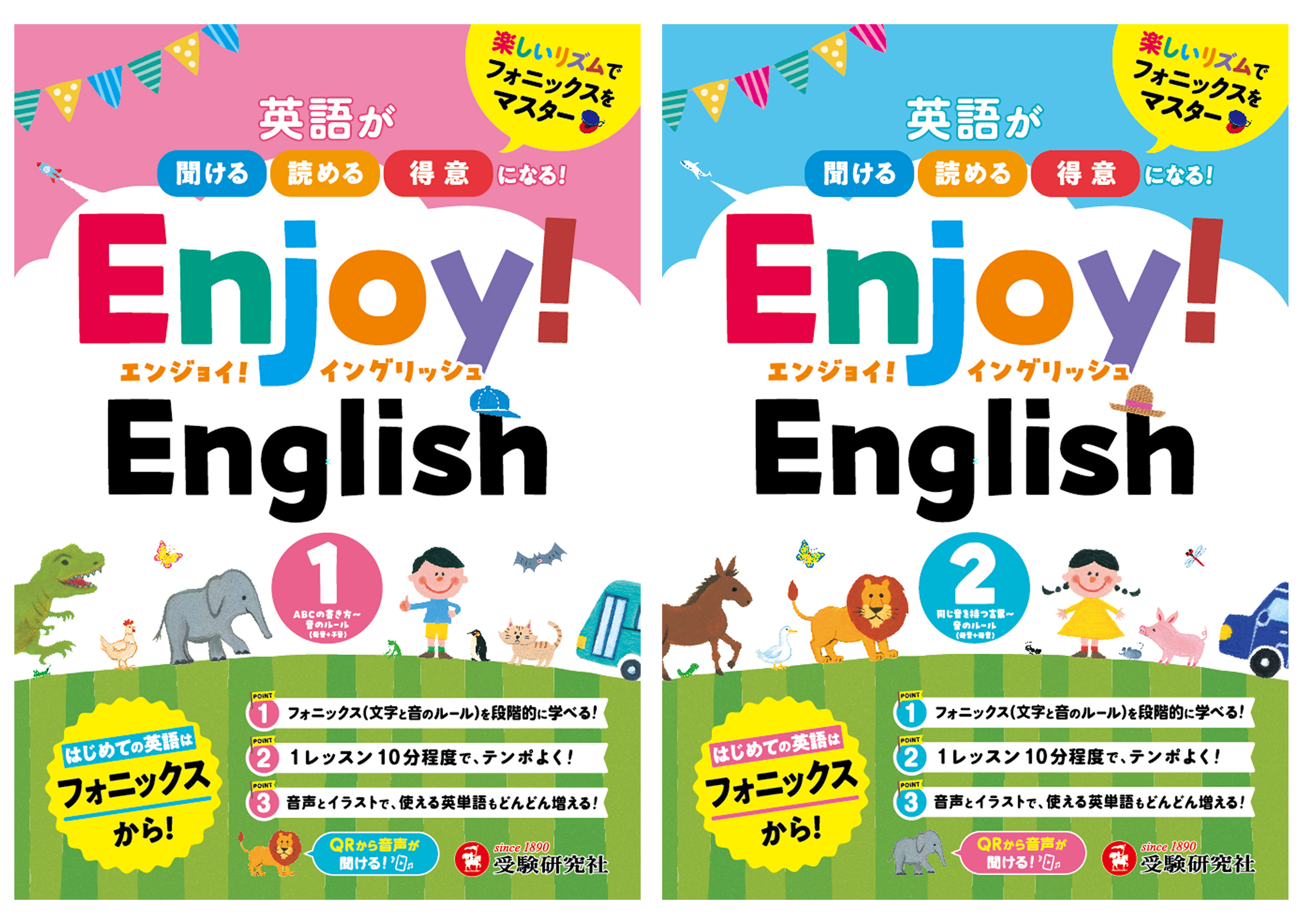 楽しくフォニックスを学べる上下2冊シリーズ。『Enjoy! English 1』 『Enjoy! English 2』