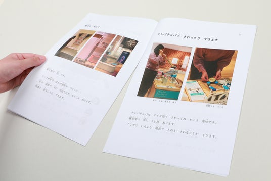 大きな写真や分かりやすい文章を用いて、当館の利用方法や行動の流れ、想定される場面をお伝えすることにより、来館前に当館における過ごし方の見通しを持ち、安心して当館を楽しんでいただく手助けとなることを目的としています。