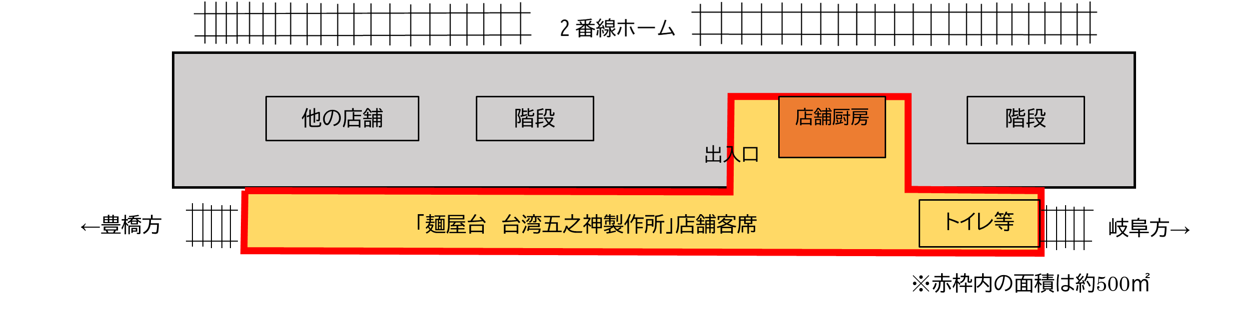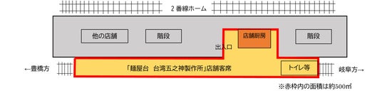 店 舗 名 : 麺屋台 台湾五之神製作所(メンヤタイ タイワンゴノガミセイサクショ)場 所 : JR名古屋駅1番線