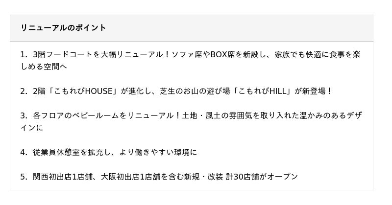 三井不動産株式会社(所在:東京都中央区、代表取締役社長:植田俊)は、「三井ショッピングパーク ららぽーと和泉」(所在:大阪府和泉市、以下「ららぽーと和泉」)において、開業以来2度目のリニューアルを実施します。
