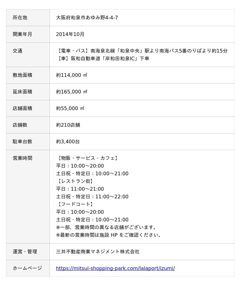 「三井ショッピングパーク ららぽーと和泉」 概要