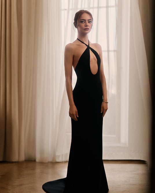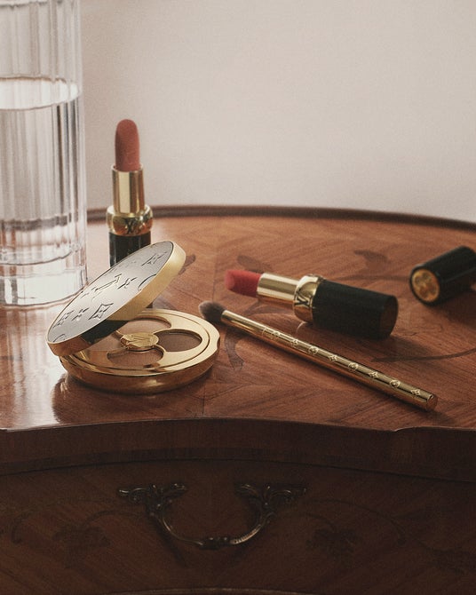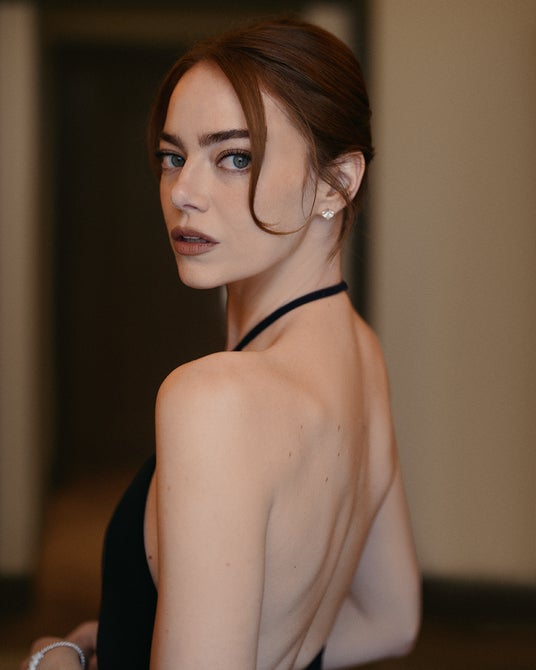 エマ・ストーンは、「LV オンブル 250 ヌード ミラージュ」で引き立てたナチュラルなアイメイクと、リップメイクに「LV バーム 010 ヌード ポエトリー」でルックを完成させました。