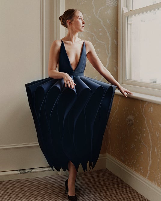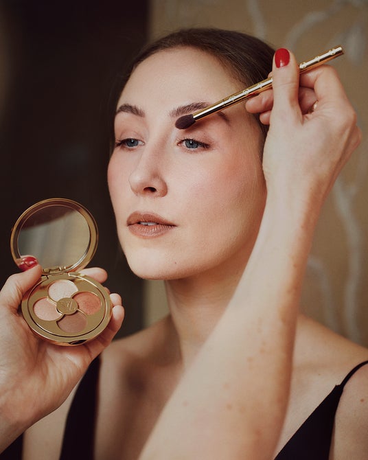 エリン・ドハティは、アイメイクに「LV オンブル 250 ヌード ミラージュ」を選び、リップメイクには「LV ルージュ 107 ワイルド ソウル」でスタイリングしました。