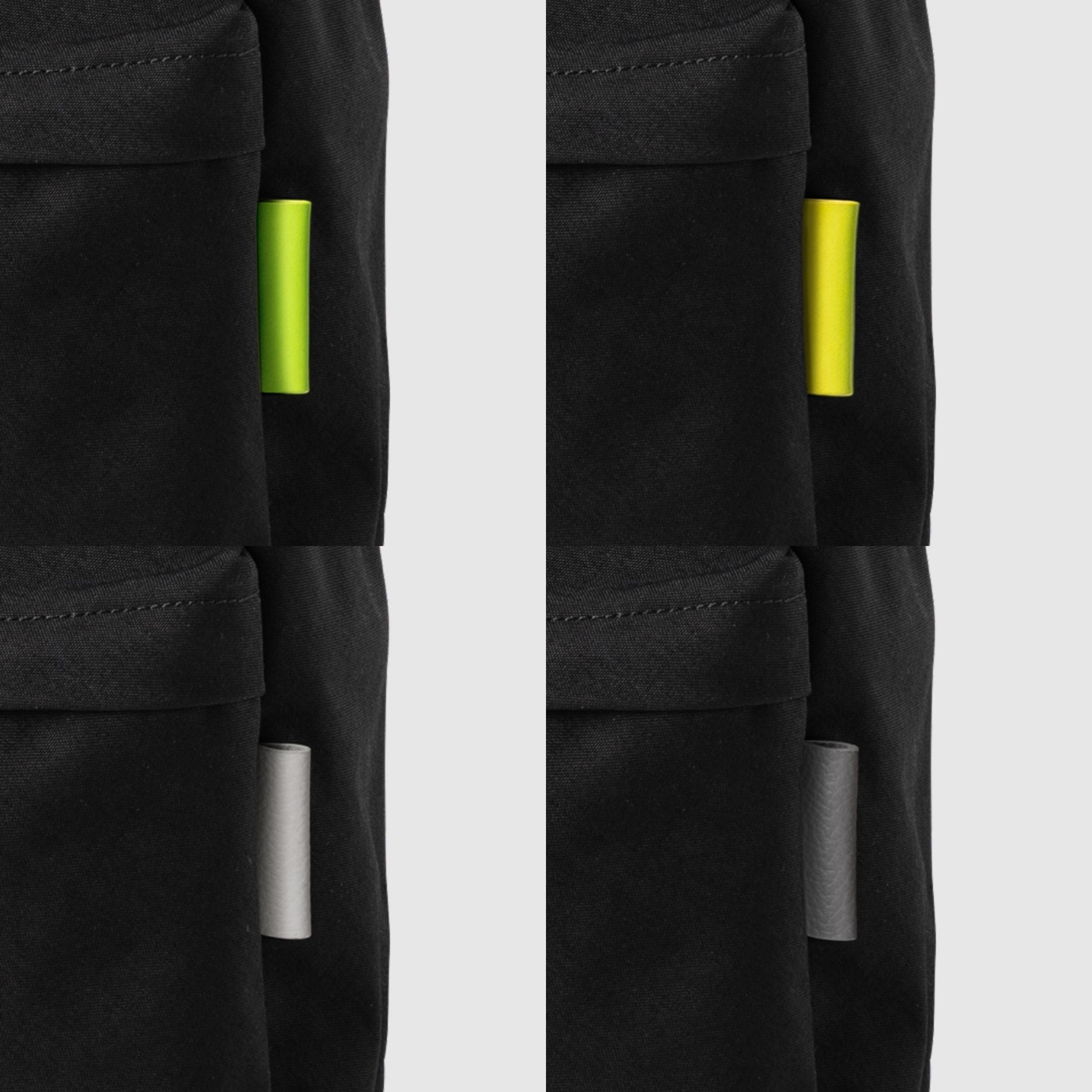 左上から時計回りに「ブラック×ライムグリーン」「ブラック×ネオンイエロー」「ブラック×グレー」「ブラック×オフホワイト02」