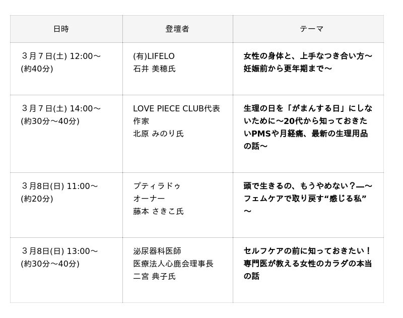 HAPPY essence2 女性のココロとカラダのケアについてのトークショースケジュール