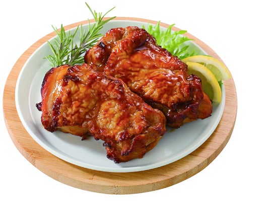 柔らかくローストされた小ぶりのチキンを照り焼き味に仕上げました。骨なしで食べやすく、ごはんの進む味付けです。