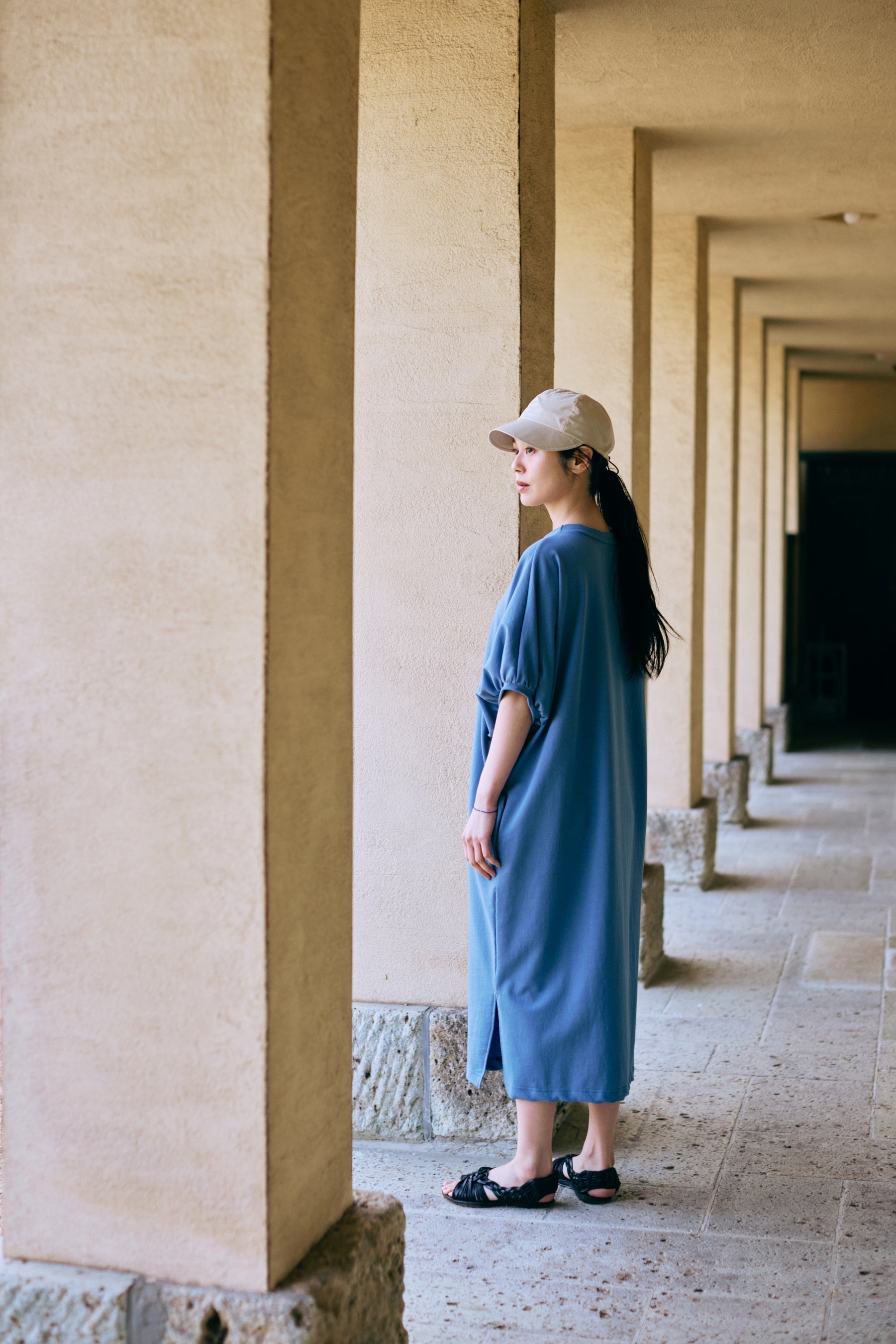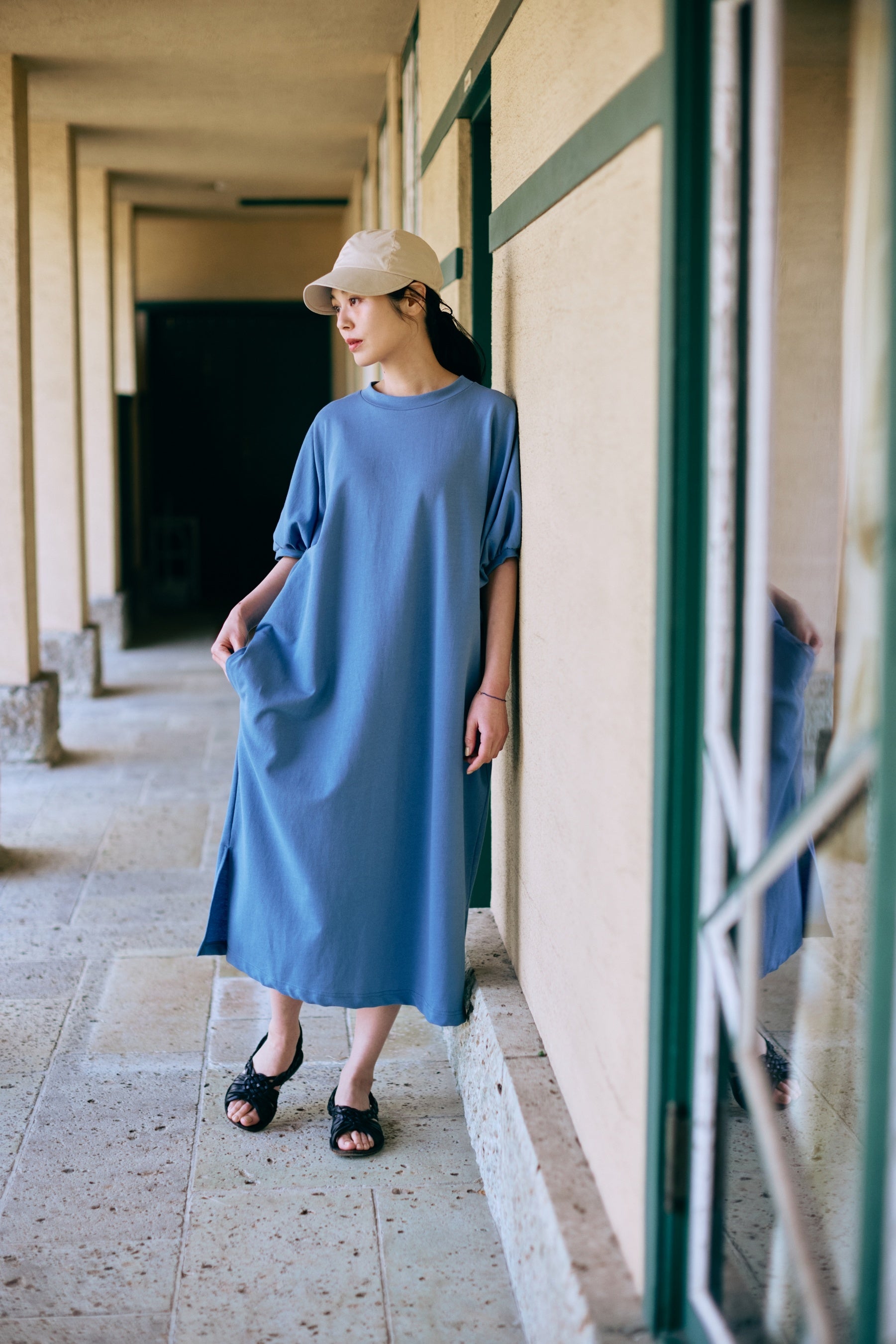 ワンピース:「コットンジャージードルマンワンピース」1万6500円(税込・5月発売予定) キャップ:「ワイドバイザーキャップ <シアー>」4400円(税込・3月発売予定)