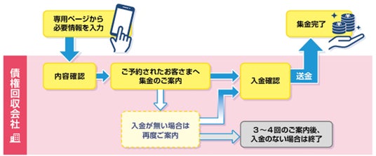 (※1)法務大臣の許可を受け、特定の債権の管理回収を専門に行う会社です。本サービスでは、特定の債権に該当しない非特定金銭債権(キャンセル料)の集金業務を代行します。なお、弁護士とは異なり訴訟代理や強制執行等の法的手続きは行いません。