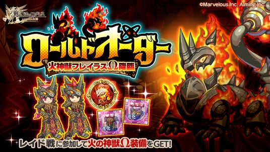 レイド戦で火神獣フレイラスΩに挑み、潜在能力解放が可能な「神獣フレイラスΩの覇装」などの報酬をGETしよう!