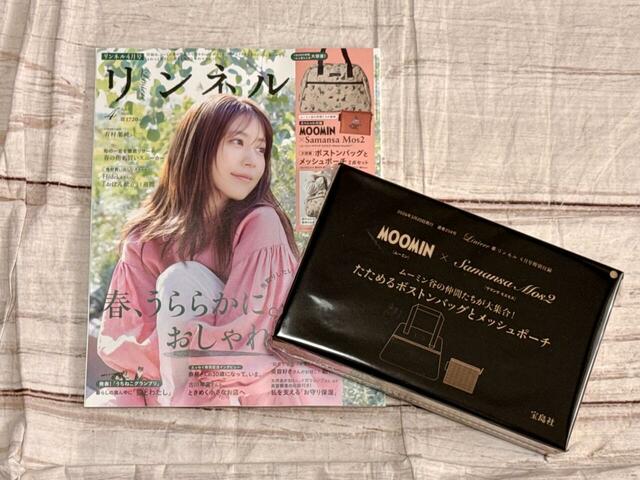 2026年2月19日(木)発売の雑誌『リンネル』4月号には、MOOMIN×Samansa Mos2(ムーミン × サマンサ モスモス)の「ボストンバッグとメッシュポーチ 2点セット」が付録として登場します。