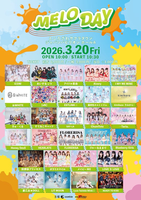 株式会社KADOKAWA(本社:東京都千代田区、取締役 代表執行役社長 CEO 夏野剛)が運営するWEBザテレビジョン(https://thetv.jp/)と株式会社zombie (本社:東京都中野区、代表 小早川啓)は、2026年3月20日(金・祝)に、埼玉県所沢市・ところざわサクラタウン ジャパンパビリオン ホールAにてガールズアイドルイベント「MELODAY」を共同開催いたします。