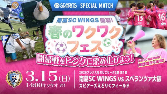 3月15日(日)(11時イベント開始、14時キックオフ)に開催する2026プレナスなでしこリーグ2部 vs スペランツァ大阪(スピアーズえどりくフィールド)において、南葛SCのパートナーであるスターツグループのご協力のもと、冠マッチ『スターツ スペシャルマッチ』を開催いたします。