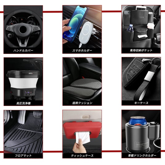 ボディカバー以外にも、愛車を守るためのプロテクションフィルムから、車内を快適にする座席クッション、スマートフォンホルダー、ハンドルカバー、キーケース、フロアマット、さらに車両のコンディションを維持する洗車・メンテナンス用品まで、カーライフをトータルでサポートする幅広い商品を展開しています。