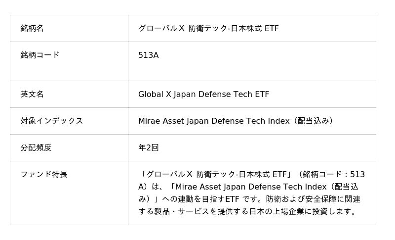 「グローバルX 防衛テック-日本株式 ETF」(銘柄コード:513A)