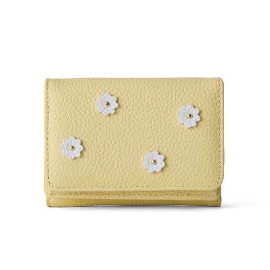 スモールフラワーハーフウォレットのひとまわり小さい三つ折りタイプ。