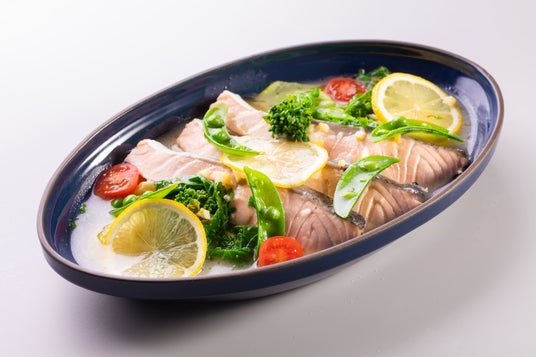 サーモンと春野菜の白ワイン蒸し 瀬戸内レモン風味