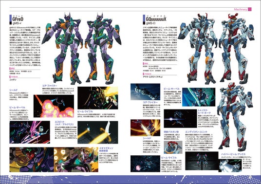本編に登場したMS、戦艦を網羅。搭載する武装やスペックなども一覧できるつくりです。