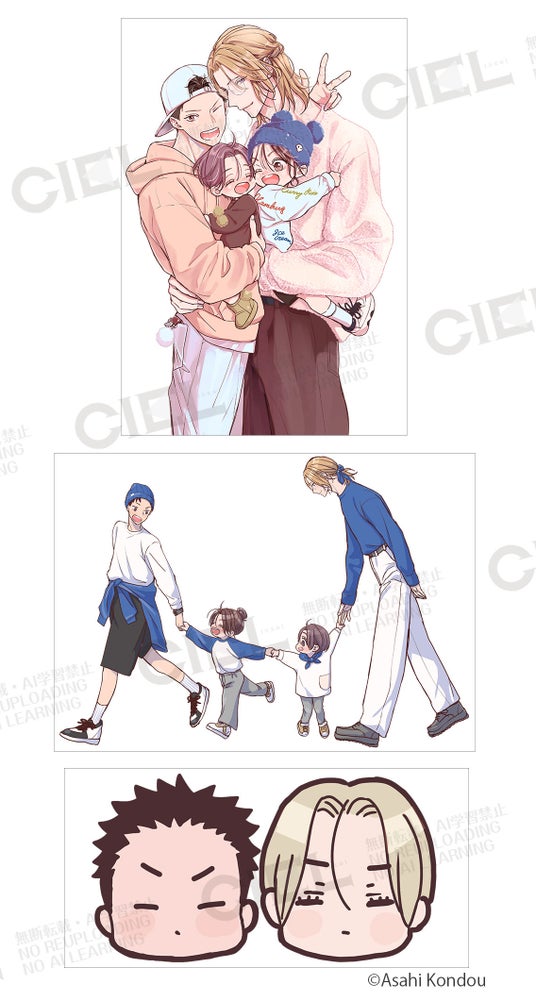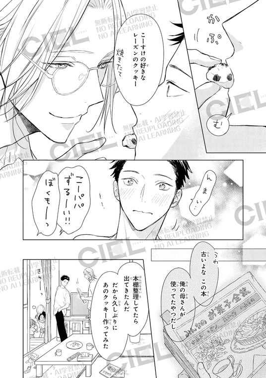 電子BL雑誌「電子版CIEL」にて連載中の『パパ×パパ~αとΩで夫夫やってます~』は、作家で主夫のα・遥とガテン系のΩ・こーすけ夫夫(ふうふ)の愛あふれる日常を描いた、オメガバース・ファミリーBLです。