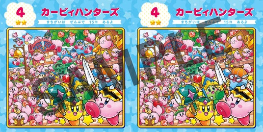まちがいの数は全部で175コ。どのシーンも探しごたえのあるまちがいがたくさん! カービィのことが大好きなお子様から大人の方まで、何度でも繰り返し遊べる1冊です。