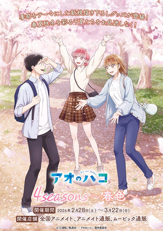 株式会社アニメイトは、TVアニメ「アオのハコ」の描き下ろしイラストを使用した新商品を、2026年2月28日から販売いたします。また、同日より【TVアニメ「アオのハコ」4 seasons~春色~】を開催いたします。