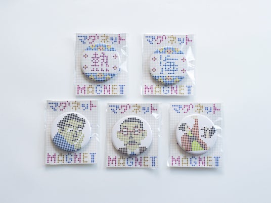 起雲閣別館で『人間失格』を執筆した太宰治をはじめ、熱海にゆかりのある文豪や作品の登場人物を缶バッジにしました。裏がマグネットになっているので、冷蔵庫や自宅のドアに貼り付けられます。