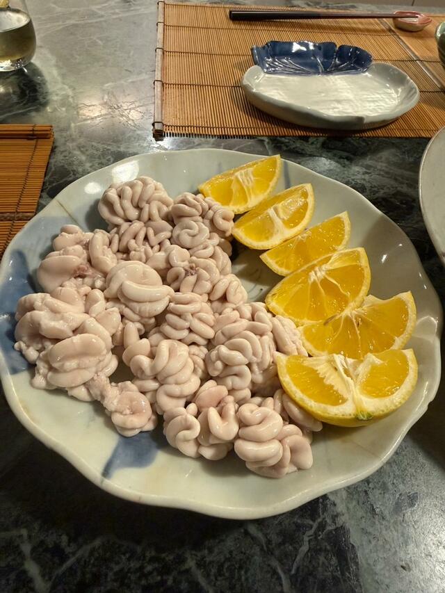 茹でた白子をポン酢醤油と大根おろしで、千枚漬け、鰯の酢じめ。