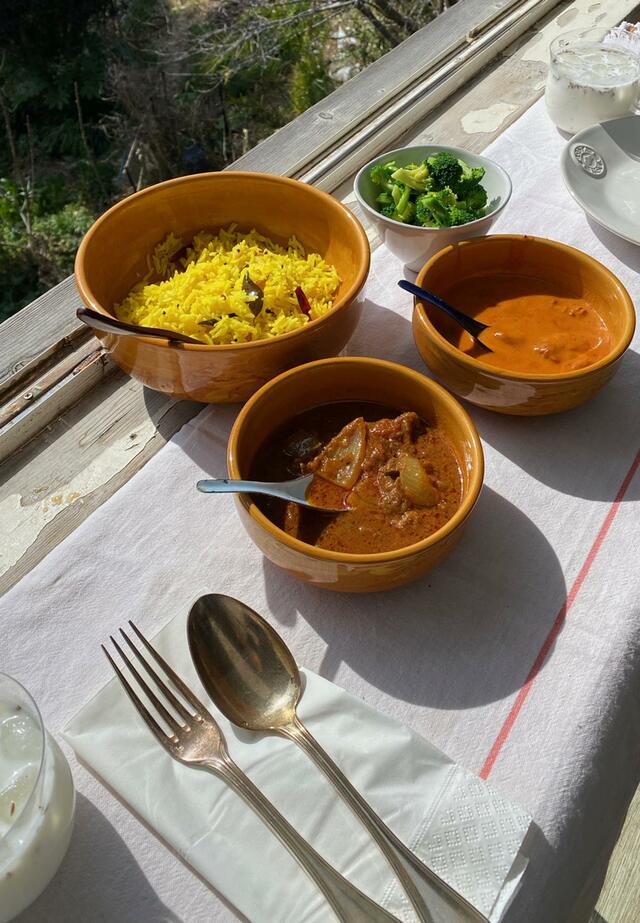 すぐ食べられるものを買い忘れて帰宅。急遽Erick South のお世話になる。レモンライス、ビーフ黒胡椒カレー、蜂蜜チキンカレー。ブロッコリーをプラス。ラッシーもプラス。ビールもプラス。いいお天気じゃ。