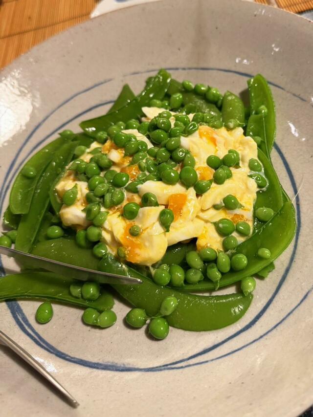 スナップエンドウとゆで卵、