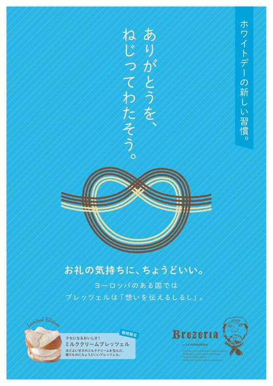 株式会社侍ファクトリー(本社:札幌市北区、代表:久保正明)が手掛ける、国内初のドイツ直輸入のブレッツェル専門店「Brezeria(ブレッツェリア)」は、2026年のホワイトデーに向け、「ありがとうを、ねじってわたそう。」をコンセプトにしたキャンペーンを展開いたします。3月1日(日)より、新作「ミルククリームブレッツェル」を全国の催事会場および公式オンラインショップにて順次発売いたします。