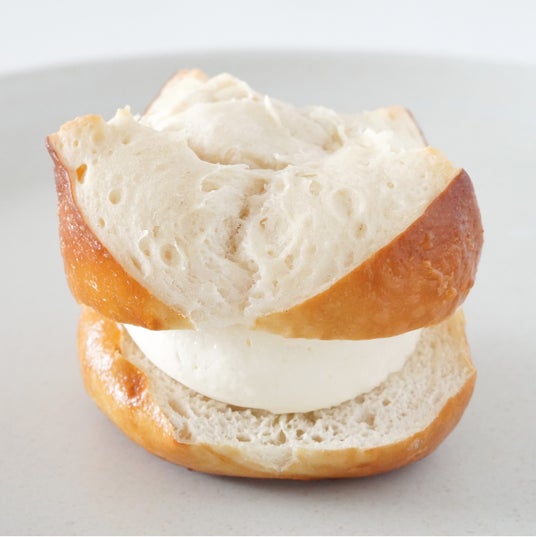 もっちりとして香ばしい北海道産小麦を使用したブレッツェルに、濃厚でミルキーな練乳バタークリームをたっぷりとサンドしました。北海道産小麦ならではの豊かな風味とほどよい塩味のブレッツェル、そして口どけの良い練乳バターの甘みが絶妙にマッチ。「甘い×しょっぱい」の止まらない美味しさを追求しました。