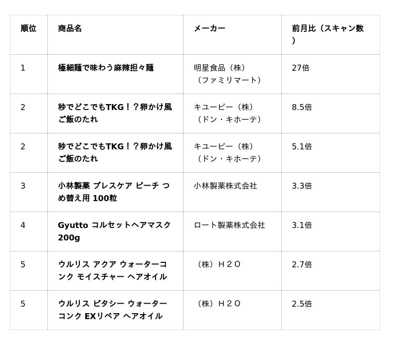 同シリーズが複数ランクインしている点から、単発の話題化ではなく、カテゴリー単位での関心が高まっている可能性があります。即体験型消費に加え、“再現型消費”志向と情報接触の相乗効果がスキャン増加につながったと考えられます。